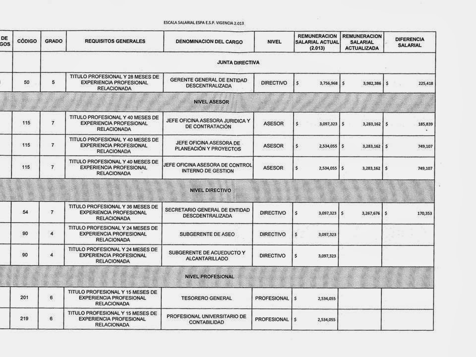 estos funcionario se encuentran Gerente general de la entidad con un aumento en su salario de $225.418.oo; jefe oficina asesora y jurídica de